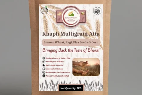 Multigrain Atta made with Emmer Wheat, Flax Seeds, Corn, and Ragi. Rich in fiber, protein, and minerals—boosts energy, supports heart health, and keeps you light yet full.