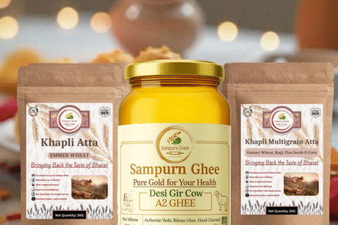 Experience the perfect blend of purity and nutrition with our A2 Ghee, Khapli Atta & Multigrain Atta combo—ideal for a healthier, balanced lifestyle.